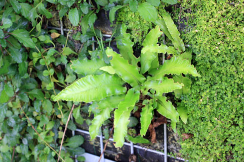 des fougères persistantes: ici une scolopendre et de la mousse, encore de l’helxine, la bonne à tout faire des endroits sombres!
