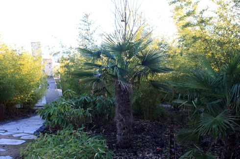 Ailleurs des palmiers rustiques n’ont pas mis leur manteau:
