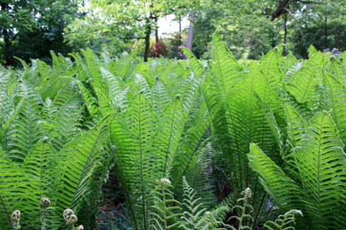 Les fougères donnent immédiatement un air de sous bois aux jardins d’ombre quand on les plante en quantité