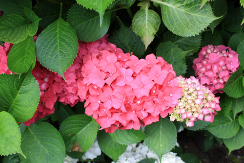 Cette année tous les hortensias ont fleuri en même temps, même le bleu qui est toujours le dernier.