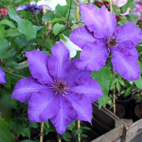 Il n’ira pas très haut, 1.20 mètre au mieux, associez-lui une jolie clématite, par exemple la clématite The President, une clématite à grandes fleurs bleues exceptionnelle! trop classe!