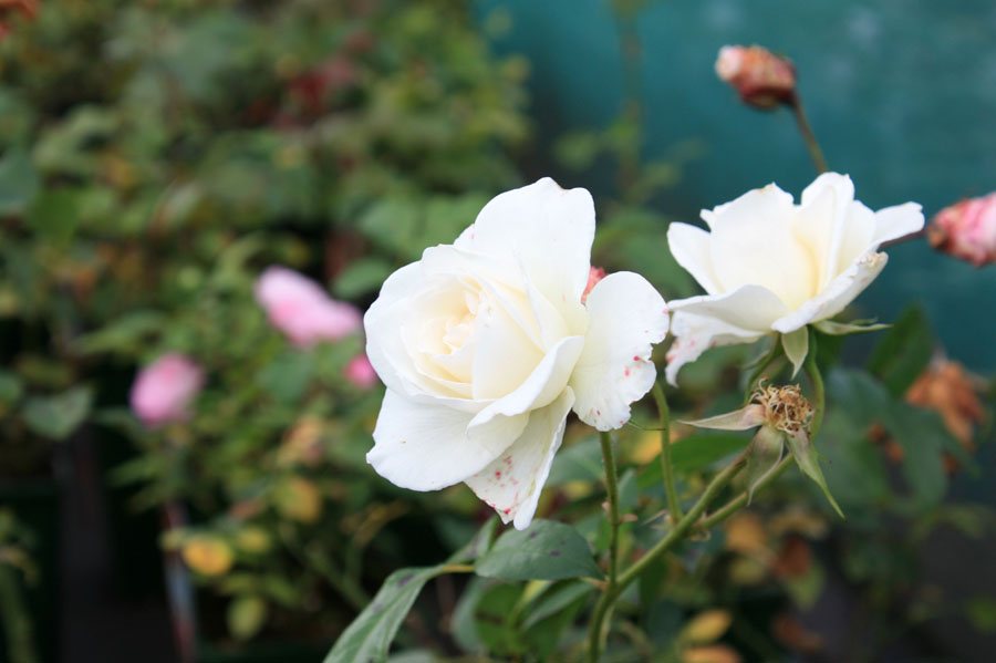d’abord sa couleur blanc immaculé, mais vous verrez… quand il pleut ses pétales résistent particulièrement bien, c’est un plus pour un rosier blanc!
