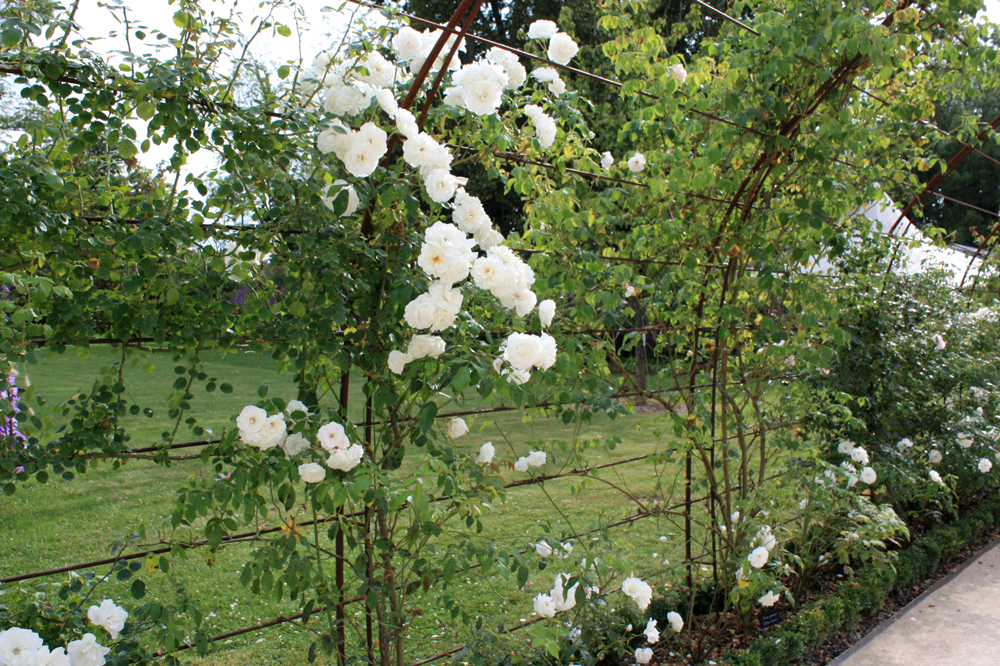 Il a aussi beaucoup de charme conduit en rosier grimpant sur un arceau comme ici: