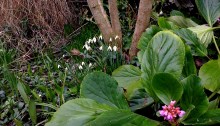 En mars les hellebores orientales sont en fleurs depuis plus d’un mois, après les perce neige c’est le moment des narcisses, ensuite des jacinthes leur tiendront compagnie! Les hellebores fétides, dans un coin plus ombragé du jardin ont encore quelques perce neige pour leur tenir compagnie.